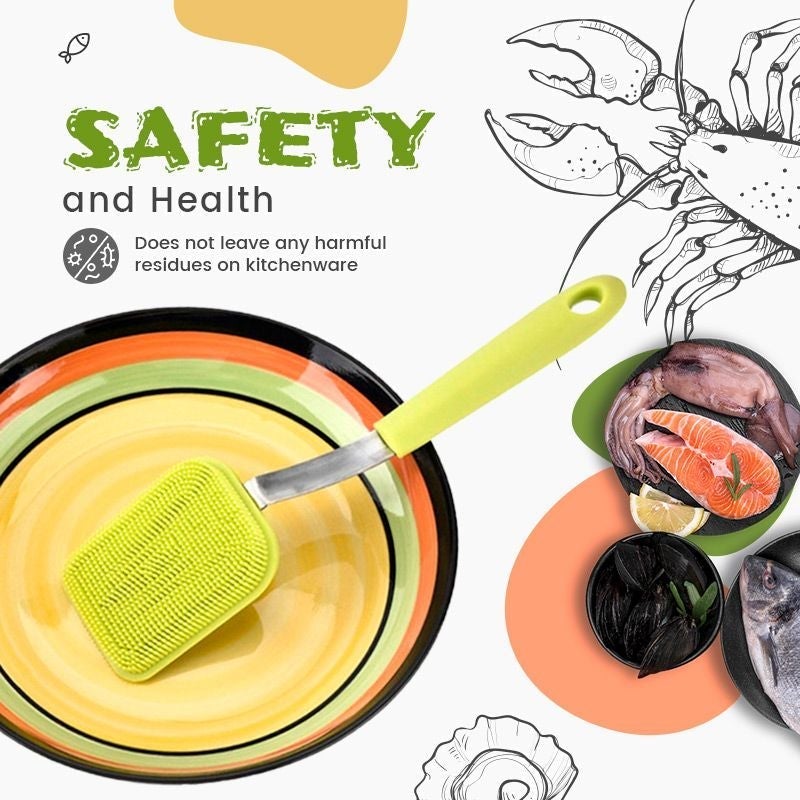 The soft silicone bristles are environmentally friendly and without leaving any harmful residues on the kitchenware. It does not scratch, absorb residue, has an unpleasant odor, and accumulate bacteria.