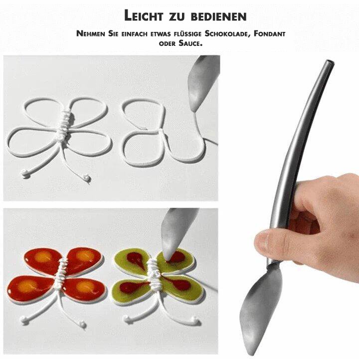 A dessert decoration pen is a pen for decorating dishes and trays to bring out the full beauty of the dish being served. Fill it up with liquid and start painting as if you were working on a canvas.