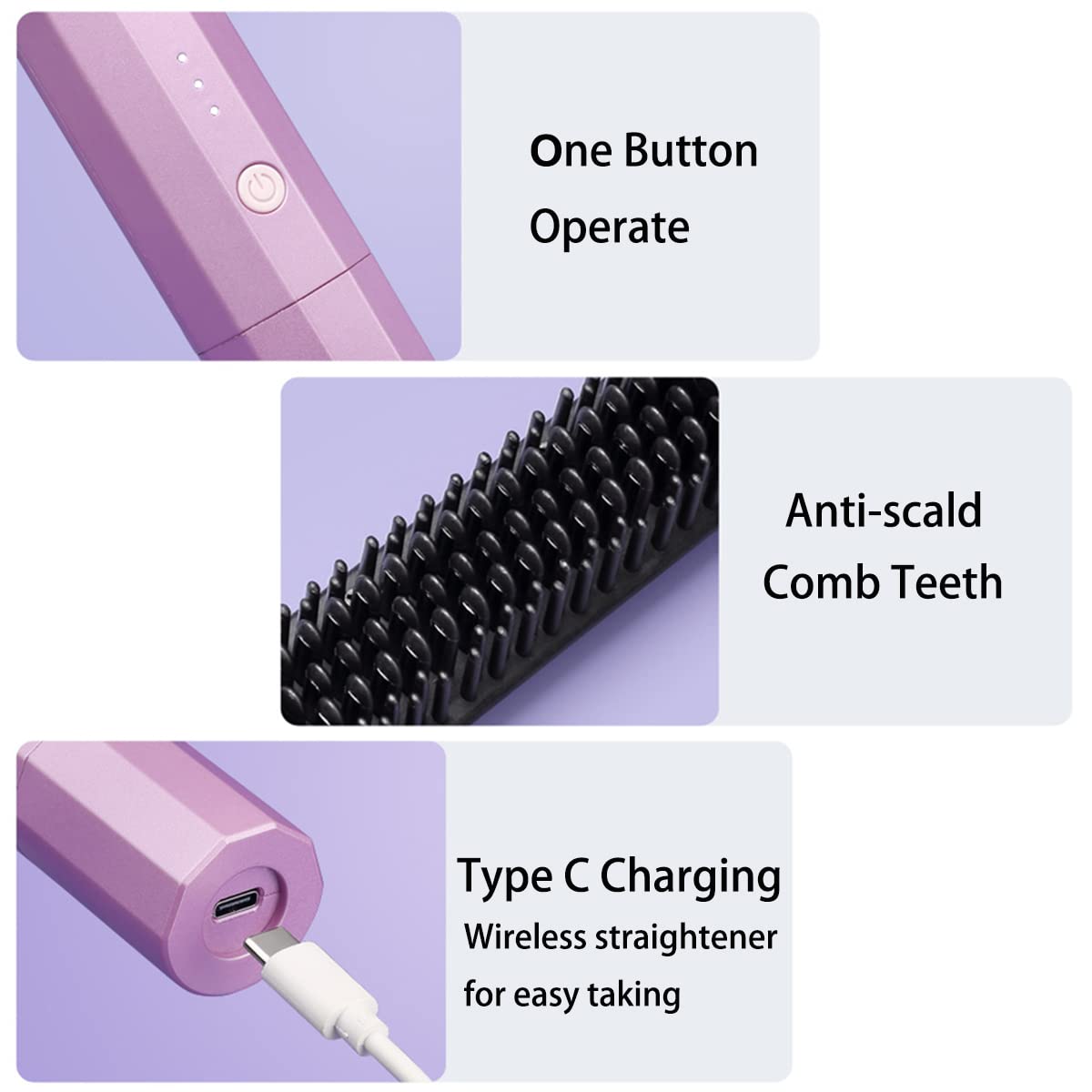 - Anti-scald & Auto-off: The straightener brush provide heat resistant protective plate and anti-scald comb teeth with a built-in temp lock, can directly touch skin and ensure at a constant temperature.